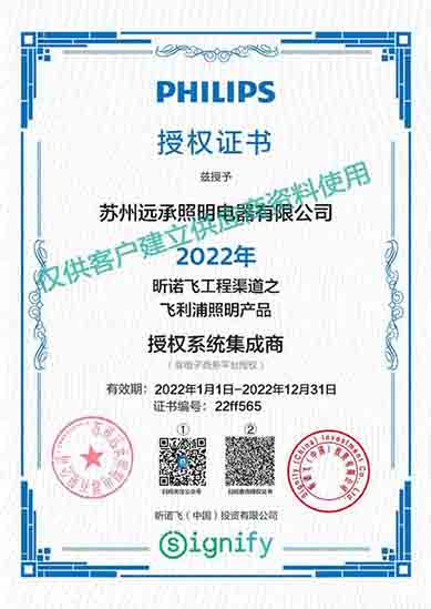 蘇州遠承照明電器有限公司是飛利浦照明經(jīng)銷商,以“誠信至上,追求卓越,為客戶創(chuàng)造價值”為企業(yè)精神,以此為堅定不移的信念,開拓進取,不斷創(chuàng)新,為廣大新老客戶提供更好的服務(wù)。